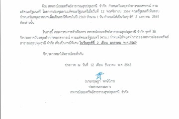 ประกาศ วันหยุดทำการของสหกรณ์ฯ เพิ่มเป็นกรณีพิเศษ วันที่ 2 มกราคม 2569