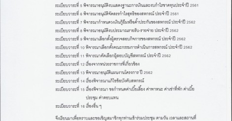 ขอเชิญประชุมใหญ่สามัญประจำปี 2561 วันอาทิตย์ที่ 18 พฤศจิกายน 2561 ลงทะเบียนตั้งแต่เวลา 07.30 น.