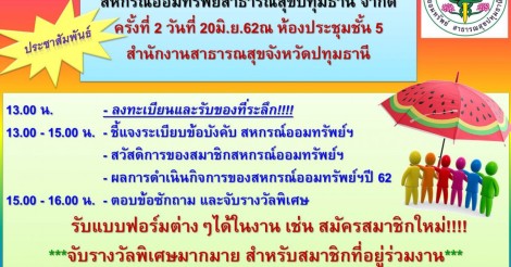 ขอเชิญร่วมโครงการสหกรณ์สัญจร ครั้งที่ 2 วันที่ 20 มิถุนายน 2562 (สสจ.ปทุมธานี)