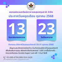 ประชาสัมพันธ์วันหยุดทำการเดือน ตุลาคม 2568