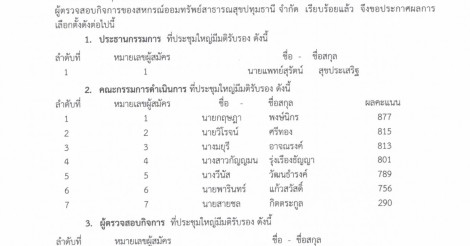 สรุปผลการเลือกตั้งประธานกรรมการ คณะกรรมการดำเนินการ และผู้ตรวจสอบกิจการ ประจำปี 2563