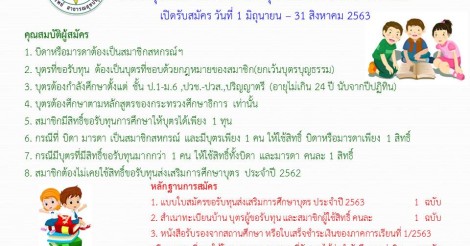 ประชาสัมพันธ์ทุนส่งเสริมการศึกษาบุตรสมาชิก ปี 2563