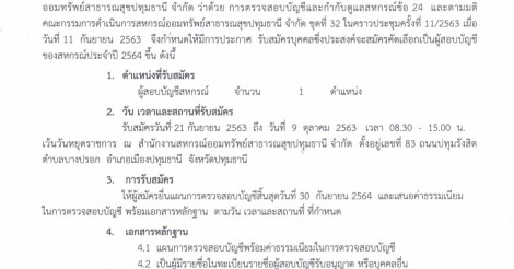 ประกาศรับสมัครคัดเลือกผู้สอบบัญชี ประจำปี 2564