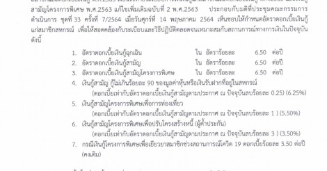 ประกาศ อัตราดอกเบี้ยเงินกู้แก่สมาชิกสหกรณ์