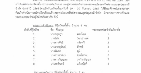 ประกาศ รายชื่อผู้สมัครเลือกตั้ง กรรมการดำเนินการ และผู้ตรวจสอบกิจการของสหกรณ์ออมทรัพย์สาธารณสุขปทุมธานี จำกัด ประจำปี 2566