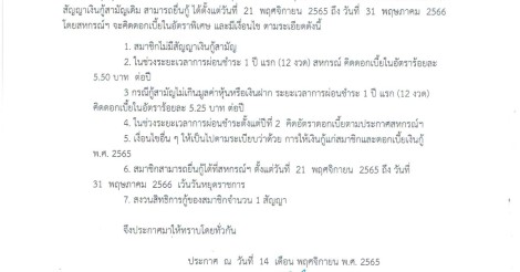 ประกาศ การให้เงินกู้สามัญแก่สมาชิก
