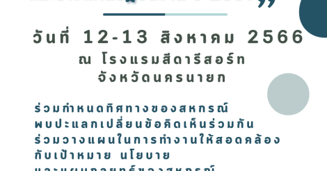 ประชาสัมพันธ์ โครงการ สรุปแผนการปฏิบัติงานปี 2566 และแผนปฏิบัติงานปี 2567 ในวันที่ 12 - 13 สิงหาคม 2566