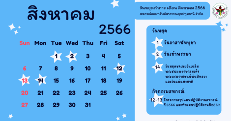 ประกาศ วันหยุดทำการสหกรณ์เดือน สิงหาคม 2566