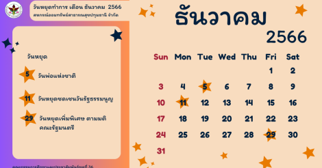 ประชาสัมพันธ์ วันหยุดทำการสหกรณ์ฯ เดือน ธันวาคม 2566
