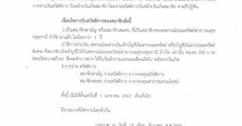 ประกาศ เรื่อง การจ่ายเงินสวัสดิการ วันคล้ายวันเกิดสมาชิก และสมาชิกสมทบ