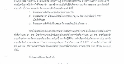 ประกาศ รายชื่อผู้ได้รับการพิจารณาเข้าร่วมโครงการ รวมใจ แบ่งปัน สานสัมพันธ์ สหกรณ์ฯ ประจำปี 2567 จ.พระนครศรีอยุธยา