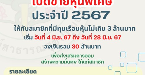 ประชาสัมพันธ์ เปิดขายหุ้นพิเศษ 4 - 28 มิถุนายน 2567