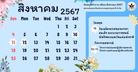 ประกาศ วันหยุดทำการสหกรณ์ เดือน สิงหาคม 2567
