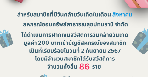 การจ่ายสวัสดิการวันคล้ายวันเกิดเดือน สิงหาคม