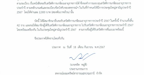 ประกาศ รายชื่อผู้ได้รับทุนสวัสดิการเกษียณอายุราชการประจำปี 2567