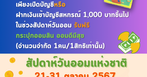 ประชาสัมพันธ์ สัปดาห์วันออมแห่งชาติ วันที่ 21 - 31 ตุลาคม 2567