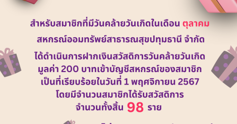 ประชาสัมพันธ์ การจ่ายสวัสดิการวันคล้ายวันเกิดเดือน ตุลาคม