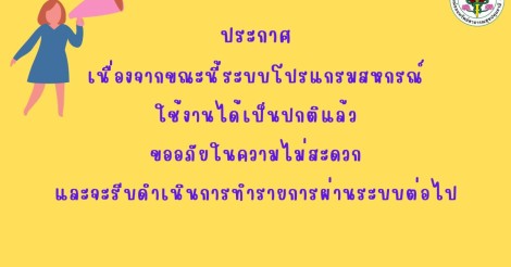 ประกาศ ณ วันที่ 16 ธันวาคม 2567 เวลา 12.00 น. ระบบโปรแกรมสหกรณ์ใช้งานได้เป็นปกติ