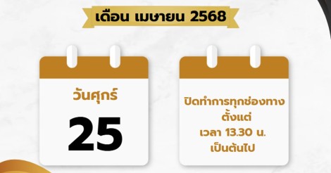 ประกาศ วันหยุดทำการสหกรณ์วันที่ 25 เมษายน 2568 ตั้งแต่เวลา 13.30 น. เป็นต้นไป