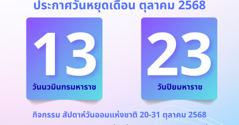 ประชาสัมพันธ์วันหยุดทำการเดือน ตุลาคม 2568