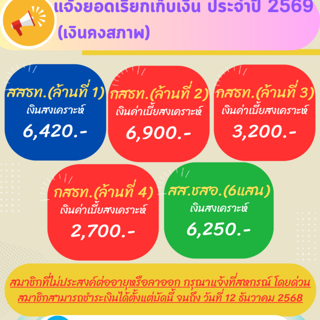 ประชาสัมพันธ์ แจ้งยอดเรียกเก็บเงิน ปี 2569