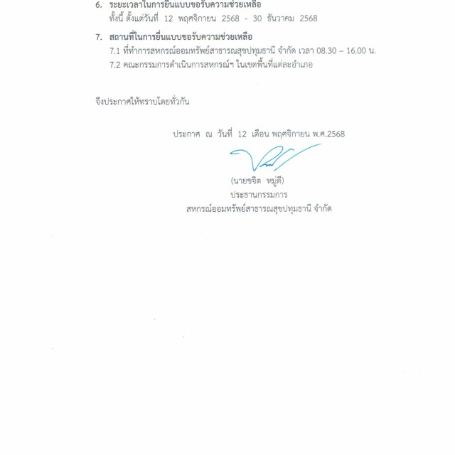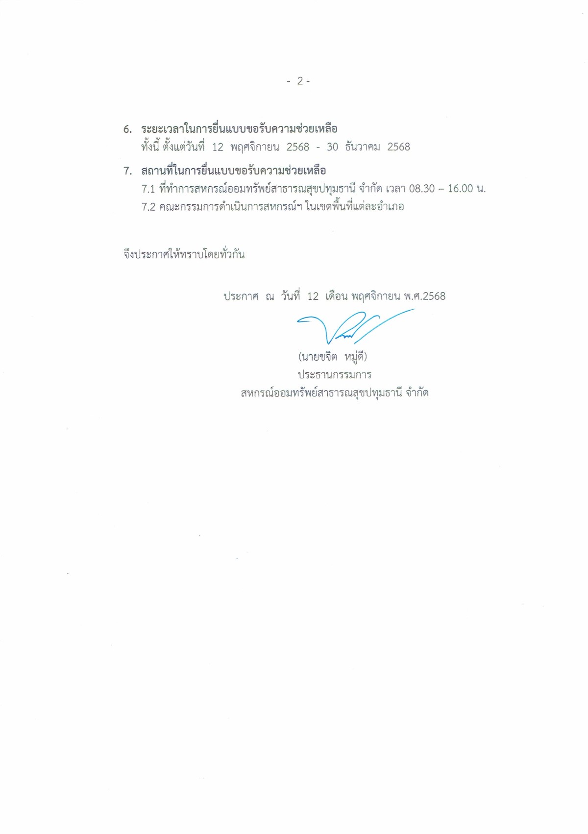 ประกาศ การให้ความช่วยเหลือสมาชิกผู้ประสบอุทกภัย ประจำปี 2568