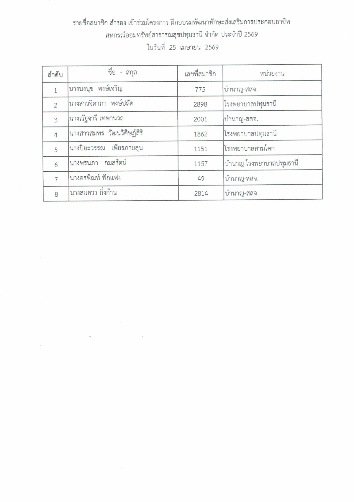 ประกาศ รายชื่อผู้ได้รับการพิจารณาเข้าร่วมโครงการ ฝึกอบรมพัฒนาทักษะส่งเสริมการประกอบอาชีพ ปี 2569