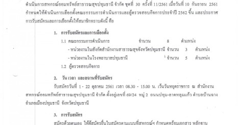 ประกาศเรื่อง การรับสมัครและเลือกตั้งคณะกรรมการดำเนินการ และผู้ตรวจสอบกิจการ ประจำปี 2562