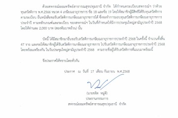 ประกาศ รายชื่อผู้ได้รับทุนสวัสดิการเกษียณอายุราชการประจำปี 2568