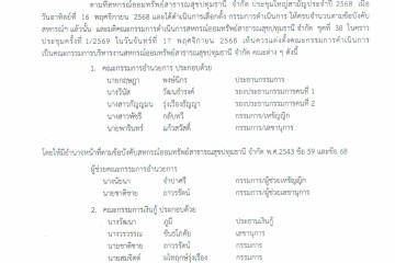 ประกาศ การแต่งตั้งคณะกรรมการบริหารงานสหกรณ์ประจำปี 2569