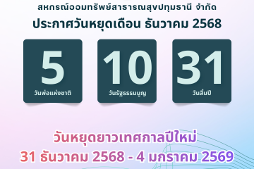 ประชาสัมพันธ์ วันหยุดทำการสหกรณ์ฯ วันที่ 5 ธันวาคม 2568