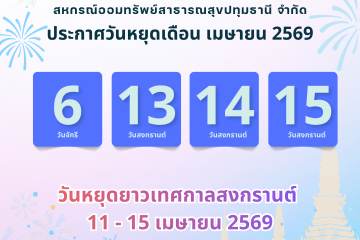 ประชาสัมพันธ์ วันหยุดเดือน เมษายน 2569