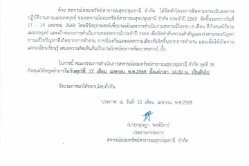ประกาศ หยุดทำการของสหกรณ์ วันที่ 17 เมษายน 2569 เวลา 14.30 น. เป็นต้นไป