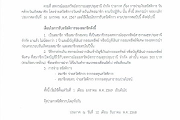 ประกาศ เรื่อง การจ่ายเงินสวัสดิการ วันคล้ายวันเกิดสมาชิก และสมาชิกสมทบ