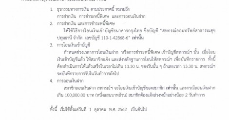 การให้บริการธุรกรรมทางการเงิน ทั้งนี้ตั้งแต่วันที่ 1 ตุลาคม 2562 เป็นต้นไป