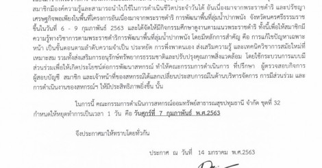 ประกาศหยุดทำการของสหกรณ์ เป็นเวลา 1 วัน คือวันที่ 7 กุมภาพันธ์ 2563