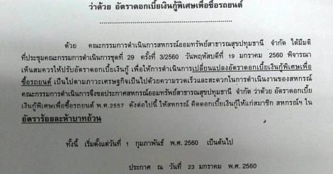 อัตราดอกเบี้ยเงินกู้พิเศษเพื่อซื้อรถยนต์ ร้อยละ 5 ต่อปี (ปิดโครงการ)
