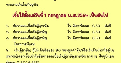 ประกาศ อัตราดอกเบี้ยเงินกู้แก่สมาชิกสหกรณ์ฯ