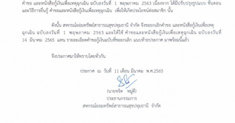 ประกาศ ขอยกเลิกคำขอ และหนังสือกู้เงินเพื่อเหตุฉุกเฉิน ฉบับเดิม (ลงวันที่ 1 พฤษภาคม 2563)