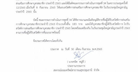 ประกาศ รายชื่อผู้ได้รับสวัสดิการส่งเสริมการศึกษาบุตรสมาชิกประจำปี 2565