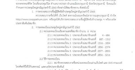 ประกาศ เรื่อง การประชุมใหญ่สามัญประจำปี 2565 ของสหกรณ์ออมทรัพย์สาธารณสุขปทุมธานี จำกัด ในวันอาทิตย์ที่ 27 พฤศจิกายน 2565
