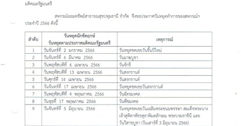 ประกาศ วันหยุดทำการ สหกรณ์ออมทรัพย์สาธารณสุขปทุมธานี จำกัด ประจำปี 2566