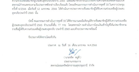ประกาศ รายชื่อผู้ได้รับความช่วยเหลือผู้ประสบอุทกภัย ประจำปี 2565