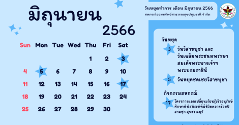 ประกาศ วันหยุดทำการสหกรณ์ออมทรัพย์สาธารณสุขปทุมธานี จำกัด ประจำเดือน มิถุนายน 2566