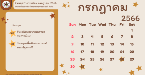 ประกาศ วันหยุดทำการสหกรณ์เดือน กรกฎาคม 2566