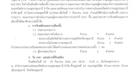ประกาศ การรับสมัคร และเลือกตั้ง ประธานกรรมการ คณะกรรมการดำเนินการ และผู้ตรวจสอบกิจการ สหกรณ์ออมทรัพย์สาธารณสุขปทุมธานี จำกัด ประจำปี 2567