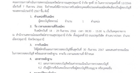 ประกาศ เรื่อง การรับสมัครคัดเลือกผู้สอบบัญชี ของสหกรณ์ออมทรัพย์สาธารณสุขปทุมธานี จำกัด ประจำปี 2567
