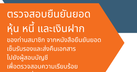 ประชาสัมพันธ์ ขอความร่วมมือสมาชิกสหกรณ์ฯ ตรวจสอบยืนยันยอด หุ้น หนี้ และเงินฝาก ณ 31 สิงหาคม 2566 โดยส่งคืนไปยังผู้สอบบัญชีภายในวันที่ 22 กันยายน 2566