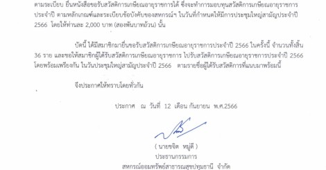 ประกาศรายชื่อ ผู้ได้รับทุนสวัสดิการเกษียณอายุราชการประจำปี 2566
