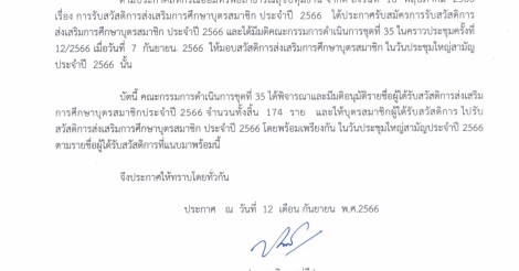 ประกาศ รายชื่อผู้ได้รับสวัสดิการส่งเสริมการศึกษาบุตรสมาชิก ประจำปี 2566